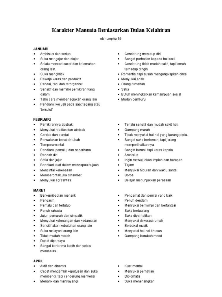 Karakter Manusia Berdasarkan Bulan Kelahiran Pdf